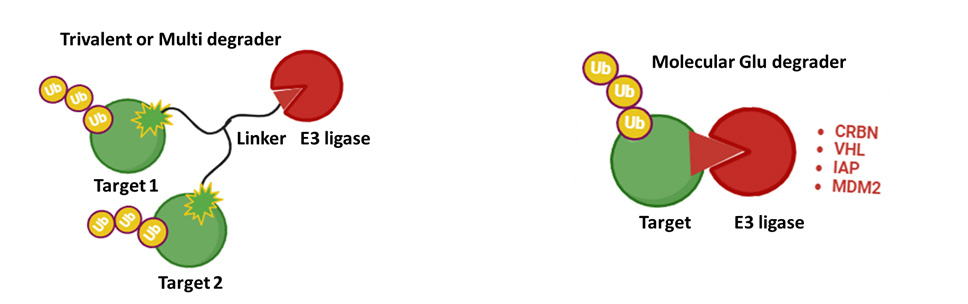 AUTAC: Relying on autophagy, AUTAC degrades a wider range of substrates by inducing K63 polyubiquitination. This approach is particularly effective for degrading cytoplasmic target proteins that are resistant to PROTAC molecules.